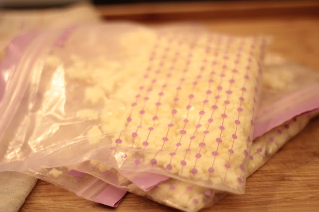 Há uns tempos comprei (numa promoção) meia bola de queijo flamengo que me ficou a menos de 3€ para cerca de 600g de queijo. Pessoalmente cá em casa compramos queijo fatiado para as sandes, mas este era uma excelente oportunidade, principalmente porque eu já tinha algo em mente. Em casa bastou ralar o queijo e dividir em saquinhos de congelação. Agora há queijo para as pizzas caseiras ou para gratinar um qualquer prato. E o preço? Muito mais em conta do que comprar queijo já ralado no supermercado.