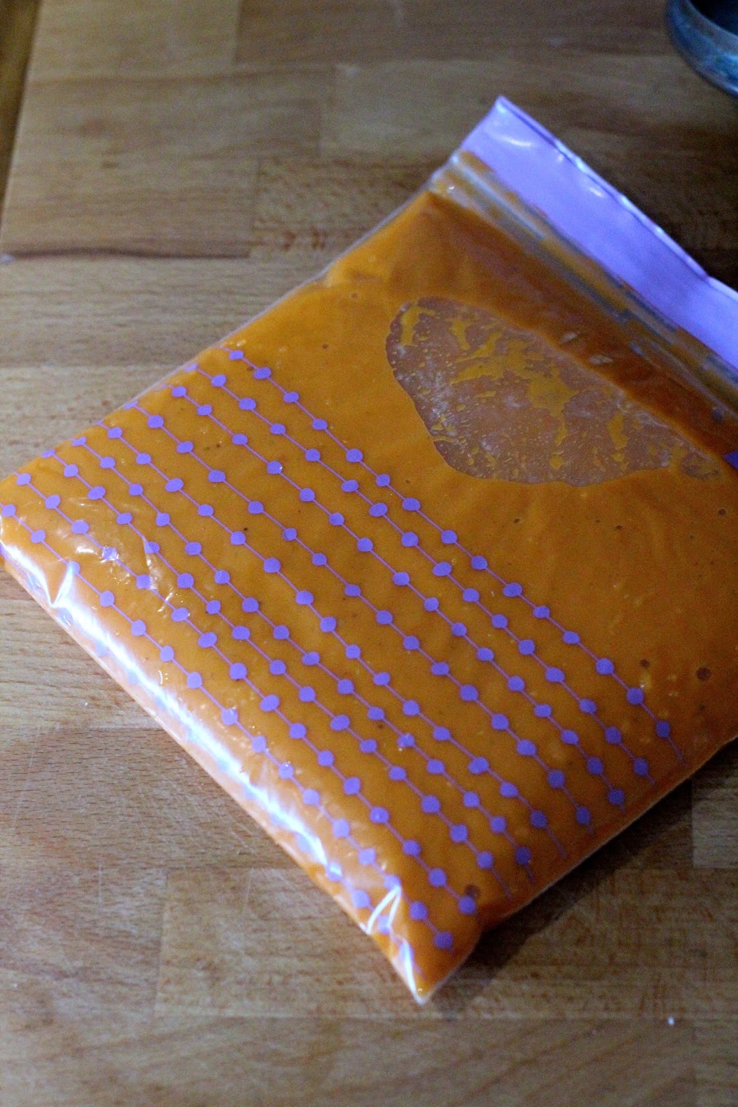 Entretanto a sopa ficou feita. Foi triturar e guardar num recipiente de vidro.