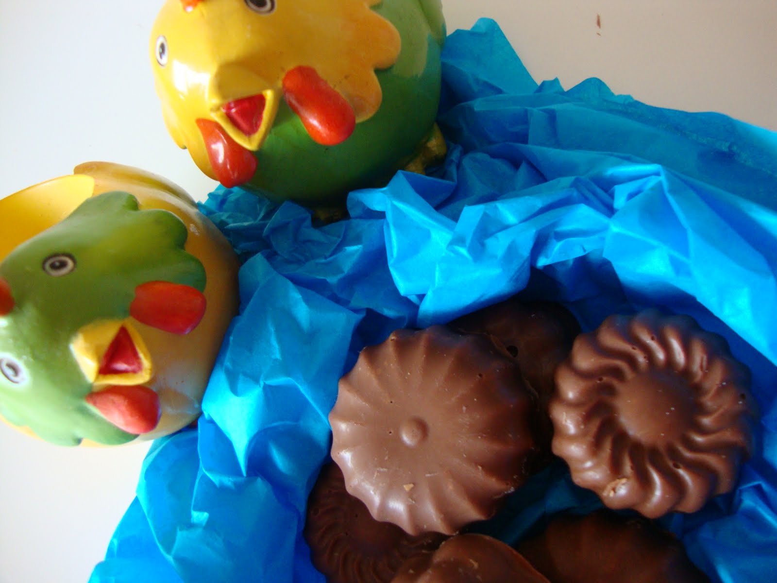 Para os bombons caseiros, não é preciso nenhum curso de chocolate: apenas uma forma de silicone para bombons (há umas optimas na "Loja do Gato Preto" e tabletes de chocolate à escolha.