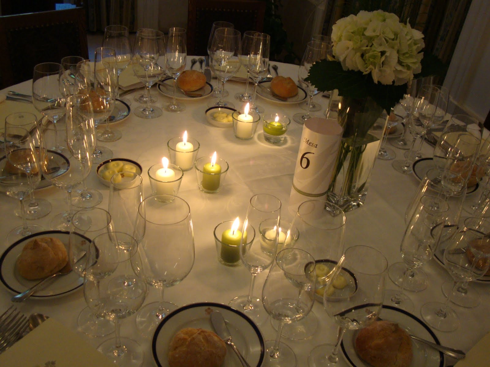 - A decoração das mesas estava simples mas elegante: foi conseguida usando uma simples hortense branca com alguma verdura numa jarra. Ao lado copinhos de velas do IKEA (1€ cada 4) com velinhas em branco e verde e vários feitios, das lojas CASA. (que ficaram em menos de 40 euros!)