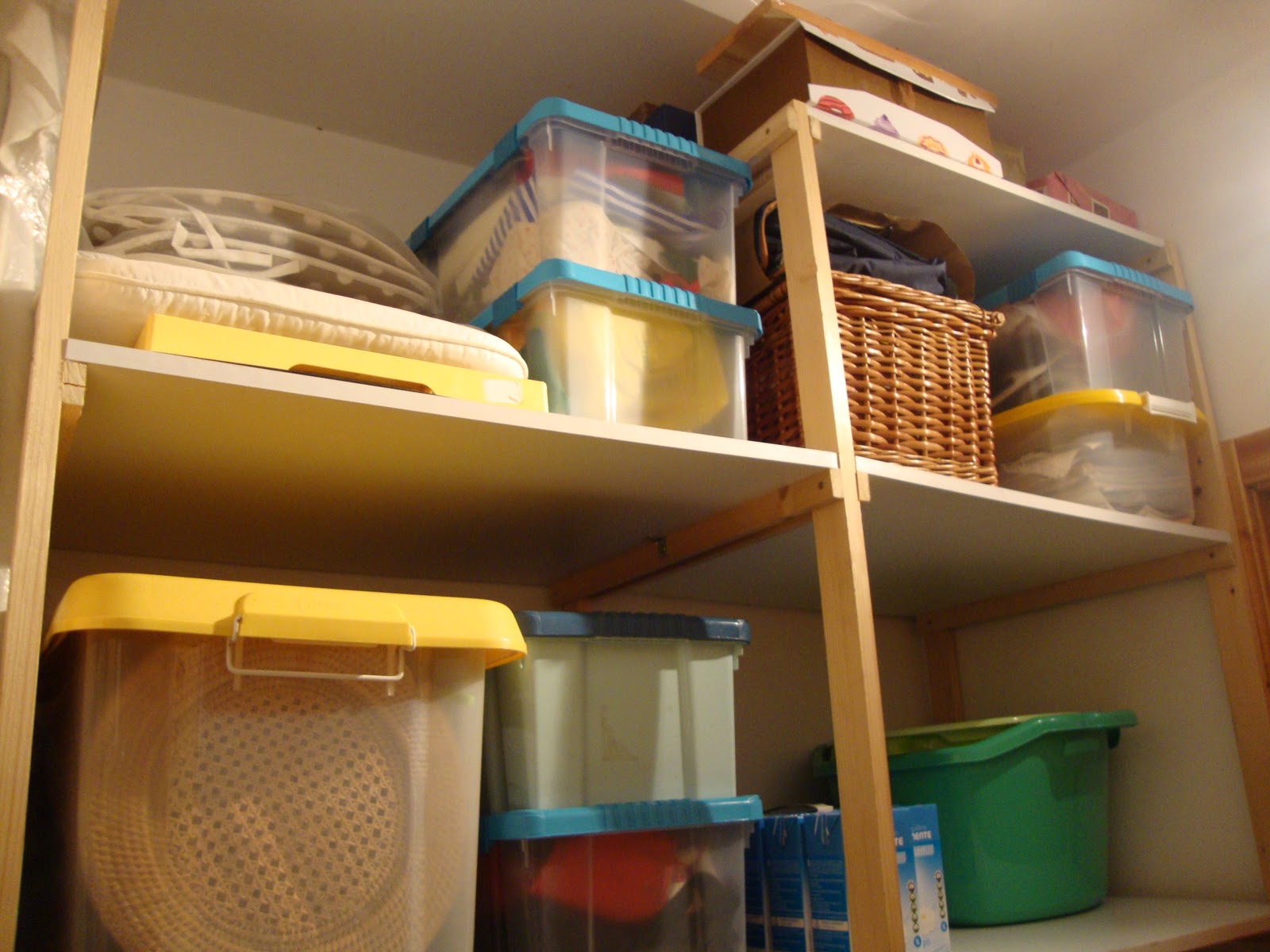 5 - Se não tem prateleiras, é uma vantagem usar as caixas plásticas uma vez que são facilmente empilháveis deixando o espaço mais livre. Não coloque caixas atrás de caixas. Deve conseguir ver todas as caixas e as respectivas etiquetas para facilmente encontrar os artigos que precisa sem andar a mover caixas e caixotes.
